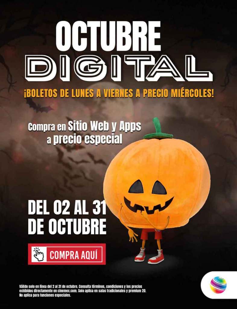 ¡BOLETOS A PRECIO DE MIÉRCOLES DE LUNES A VIERNES CON “OCTUBRE DIGITAL” SOLO EN CINEMEX!