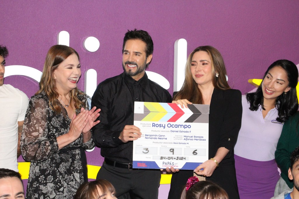 En una locación ubicada al poniente de la CDMX, se realizó el pizarrazo por inicio de grabaciones de la telenovela Papás por conveniencia, historia protagonizada por Ariadne Díaz y José Ron.