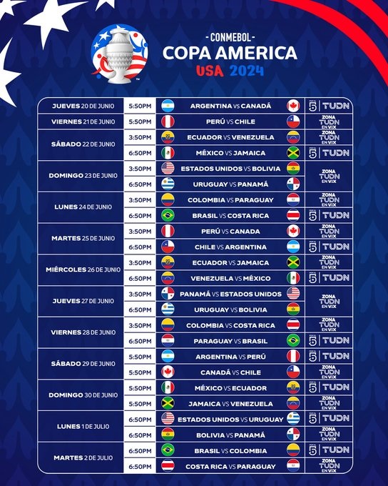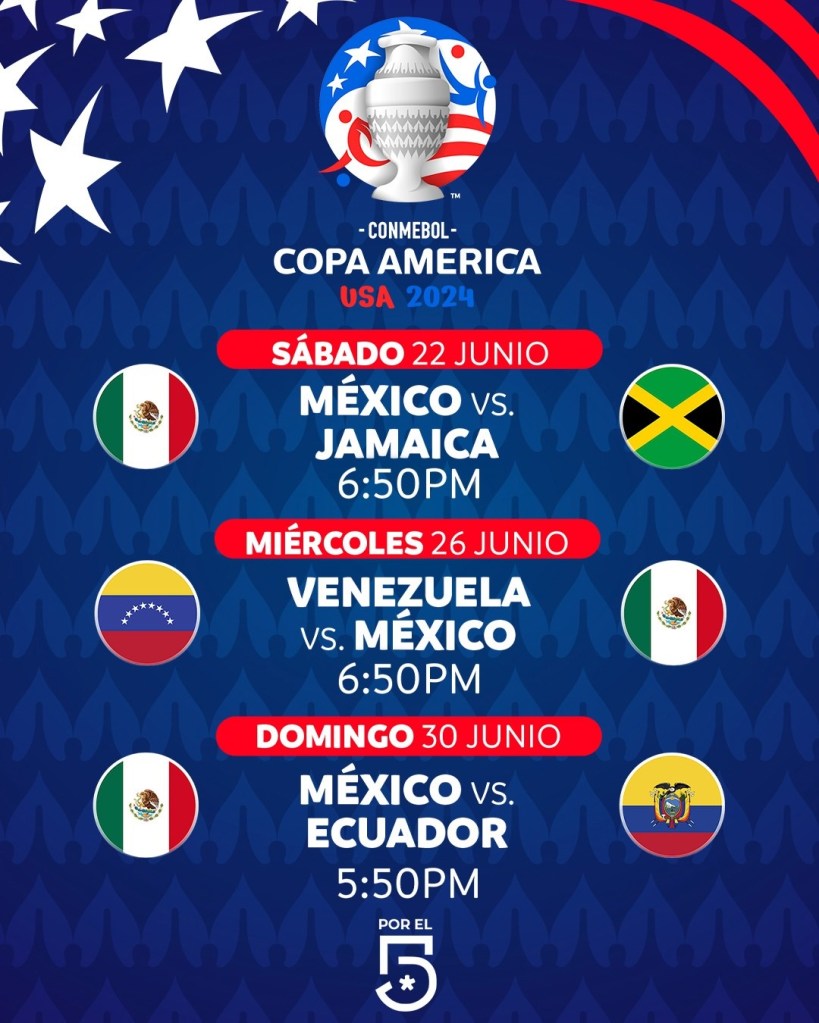 Las y los aficionados podrán ver los 32 partidos del torneo en ViX, así como 16 de ellos en televisión abierta, por Canal 5, tales como el juego inaugural entre Argentina y Canadá; los tres partidos de la Selección Mexicana en la fase de grupos frente a Jamaica, Venezuela y Ecuador; tres duelos de los cuartos de final; las dos semifinales; y la gran final a disputarse el domingo 14 de julio.