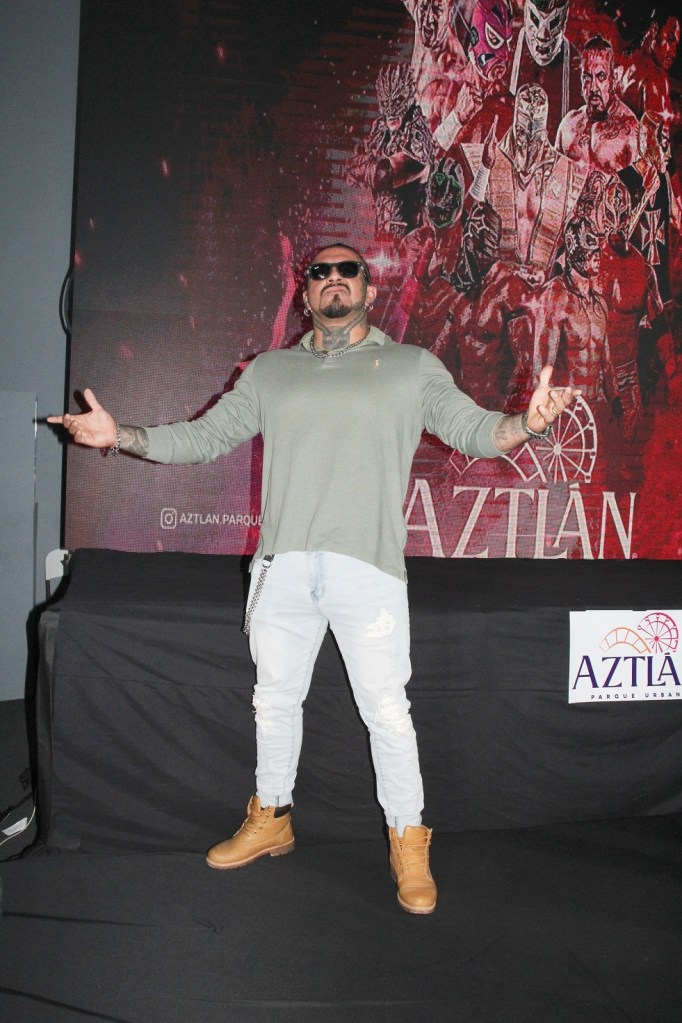 Rey Aztlán, el nuevo gladiador que representa la cultura y valores del parque, fue presentado como parte del cartel.