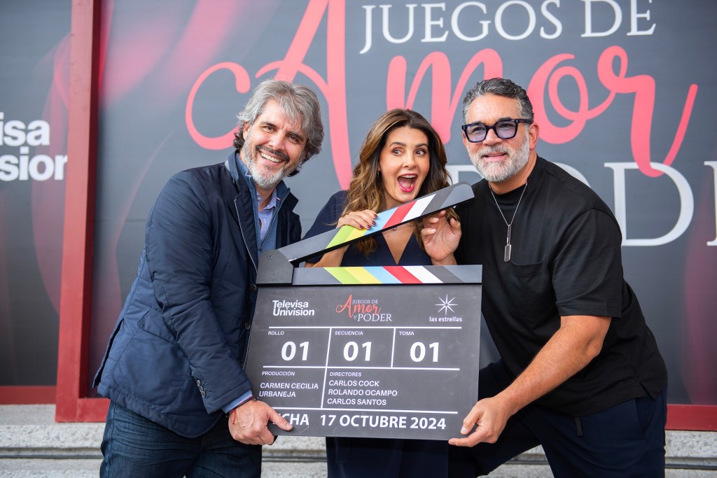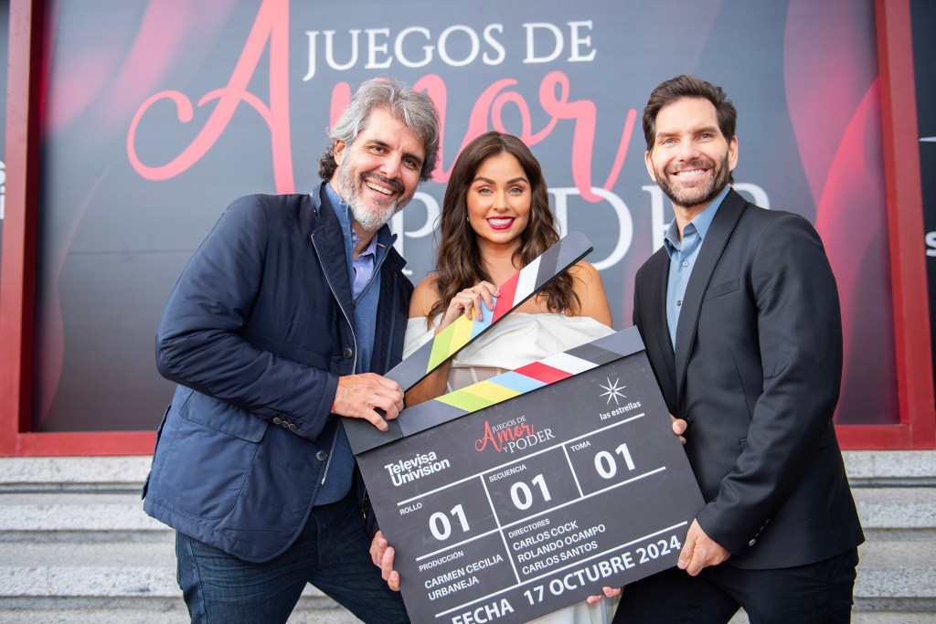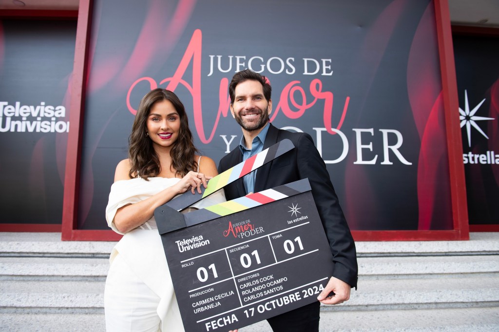 Juegos de amor y poder, protagonizada por Claudia Martín y Arap Bethke, realizó hoy su pizarrazo de inicio de grabaciones en la Plaza de las Estrellas de Televisa San Ángel.