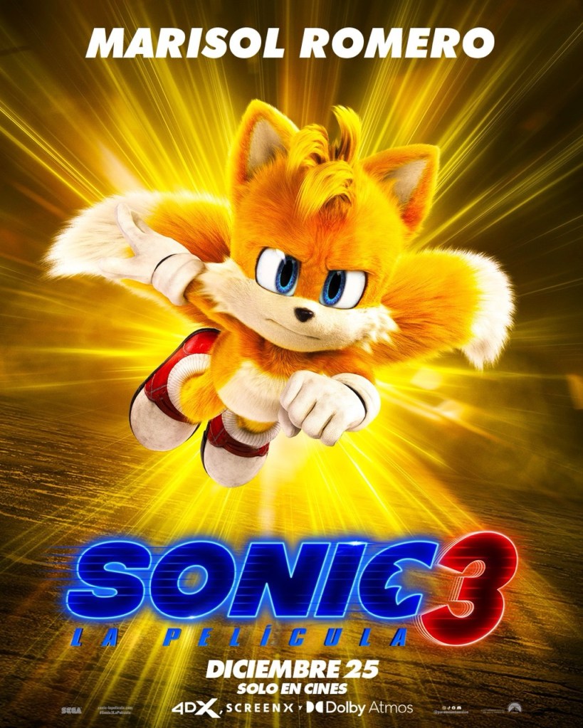 Y en la version doblada al español regresa Luisito Comunica como Sonic, René García como Shadow, Octavio Rojas como Knuckles y Marisol Romero como Tails.
