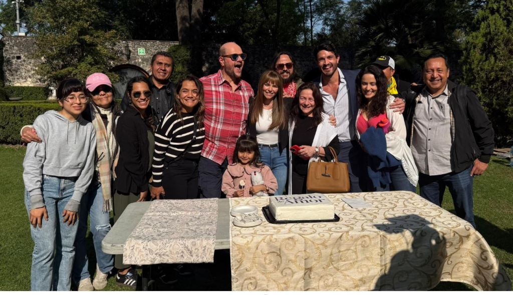 En una breve pausa durante las grabaciones, la productora Silvia Cano, la pequeña actriz Almudena López y el protagonista Chris Pazcal, además de compañeros del equipo de producción, cantaron “Las Mañanitas” para la cumpleañera, mientras Alejandra soplaba la velita de su pastel.
