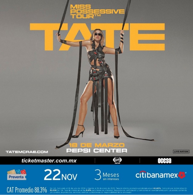 El próximo mes, TATE se embarcará en su gira mundial Miss Possessive Tour™ que abarcará 80 fechas en Sudamérica, Europa, Reino Unido y Nortamérica. Producida por Live Nation, la gira comienza el 18 de marzo en la Ciudad de México con la presentación de TATE MCRAE en el Pepsi Center.