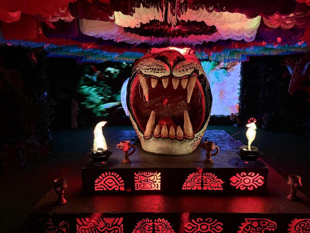 Por su parte el “Laberinto” tendrá novedades interactivas y un modo Dark Ambient que simula el Izmictlán Apochcalolca, la laguna de aguas negras y la batalla entre Cipactli y Quetzalcóatl. Al igual que una sala que reconstruye el Tépetl Monamicyán (montañas que se juntan) y de Iztépetl (el cerro de obsidiana), además de tener un retrabajo audiovisual en cada una de las salas, logrando una experiencia enriquecida. También este año hay una jungla con una espectacular ofrenda al dios Tepellóyotl, el Dios Jaguar, protector de esa dimensión.