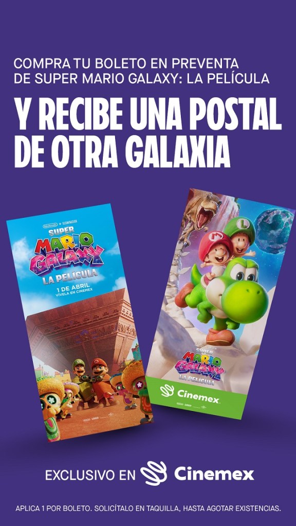 cinemex.com y en nuestra app oficial. ¡La galaxia y la Princesa Peach te esperan!