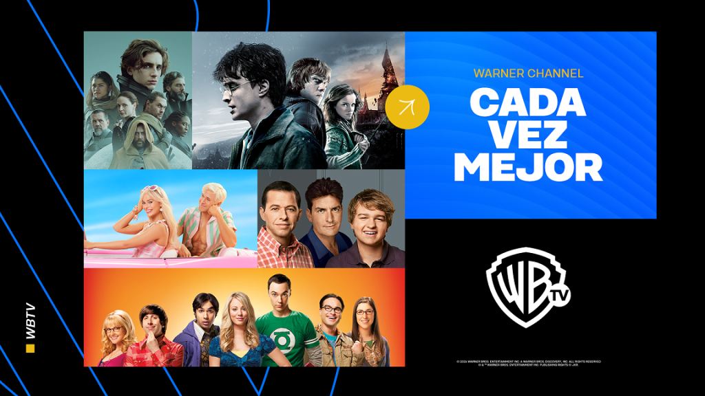 Warner Channel es el hogar de las sitcoms, películas y franquicias más icónicas y exitosas de Warner Bros. Studios, donde se reúnen los shows favoritos de generaciones de fans como ‘The Big Bang Theory’, ‘Two and a Half Men’, ‘Two Broke Girls’ (próximamente), con el suceso de películas como ‘Harry Potter’, ‘Barbie’, ‘Animales Fantásticos’, ‘Duna’ y otros éxitos de la cultura pop. El público creció viendo sus títulos más queridos en Warner Channel, por eso la marca renueva su imagen para ser cada vez mejor y seguir acompañando a su audiencia en su evolución.